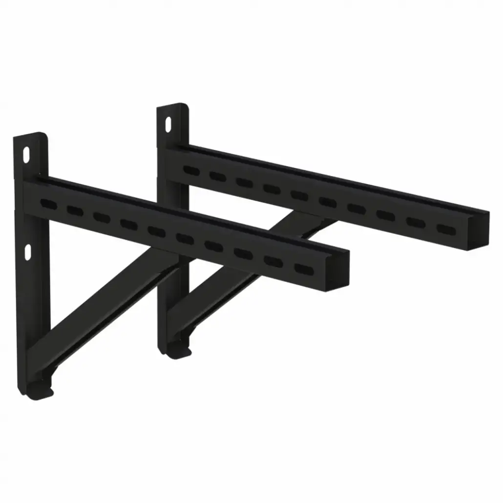 Compus din două piese, acest suport vopsit în camp electrostatic cu vopsea neagră rezistă cu brio la intemperii și medii umede pe o perioadă îndelungată.