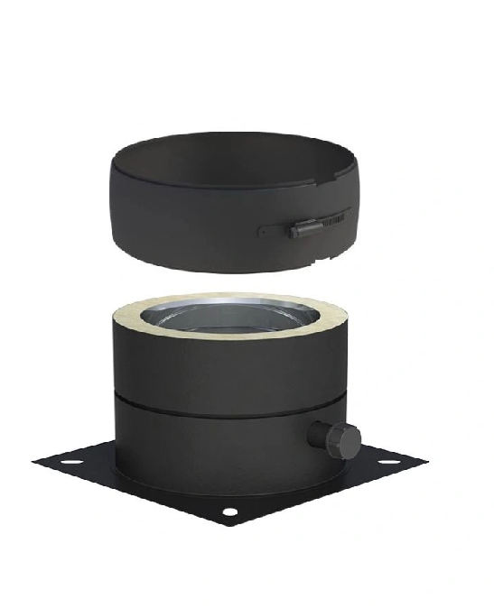 Placă descărcare coș de fum cu funcție dublă: susține structural întregul sistem și colectează eficient condensul prin picurator lateral. Ideal pentru instalații sigure și durabile.