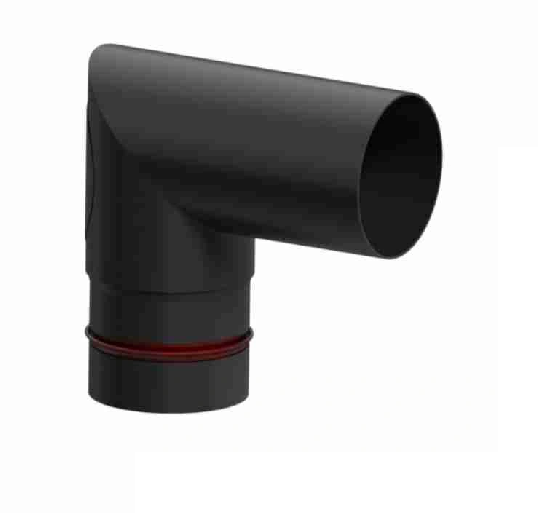 Cotul fix 2 segmente cu vizitare permite o racordare rapidă și etanșă a tubulaturii de evacuare pe 90° la coșul de fum.
