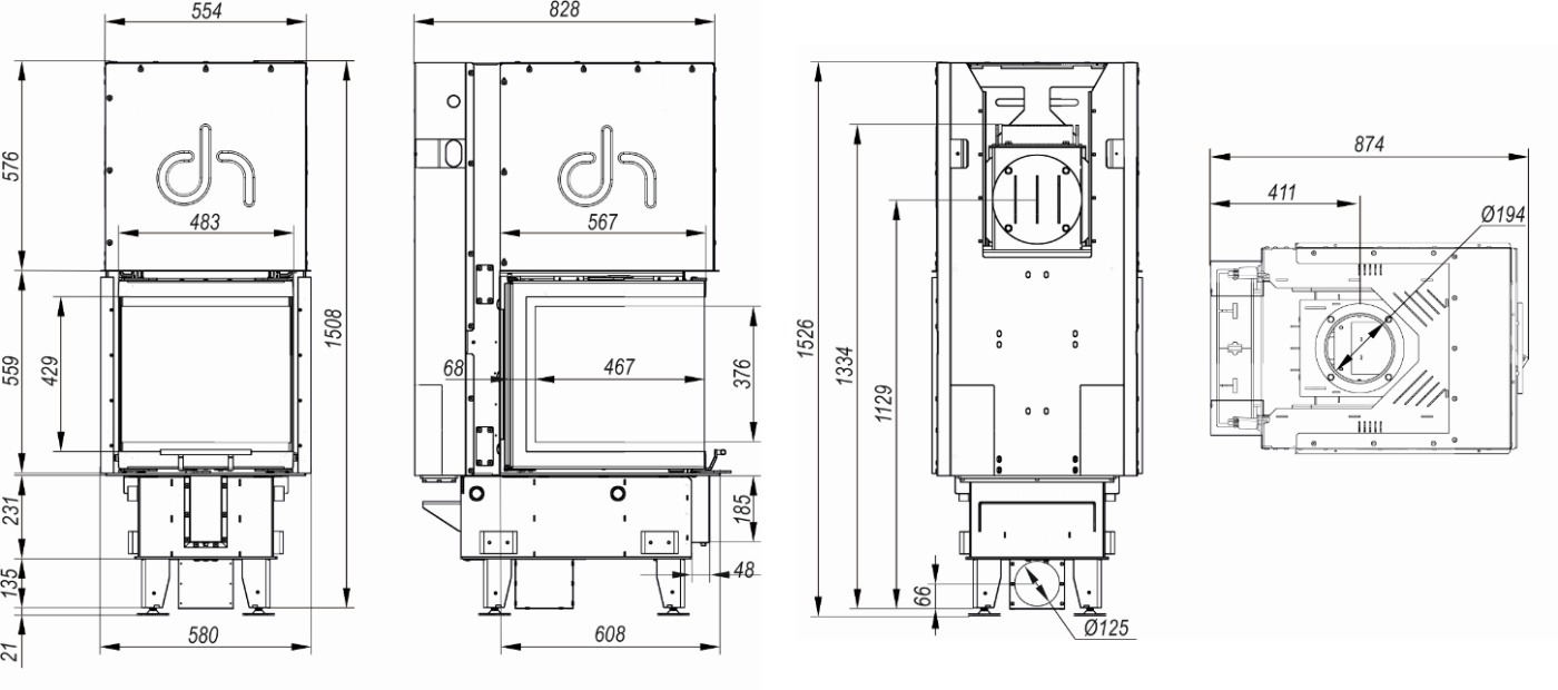 Diametrul admisiei aerului: 125 mm – Permite o bună circulație a aerului pentru o ardere optimă.