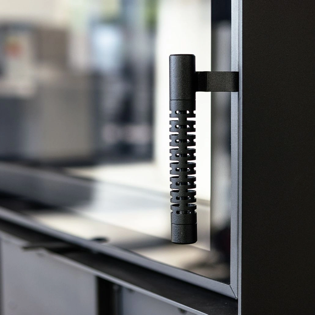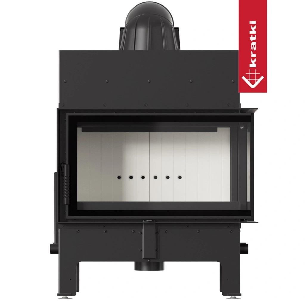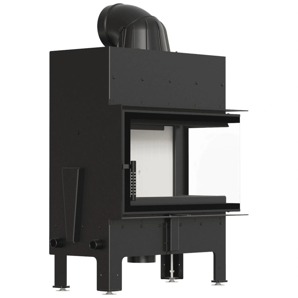 Sticlă ceramică pe colț (dimensiuni: 725x401x333 mm) – rezistă la temperaturi extreme și oferă vizibilitate panoramică a flăcării